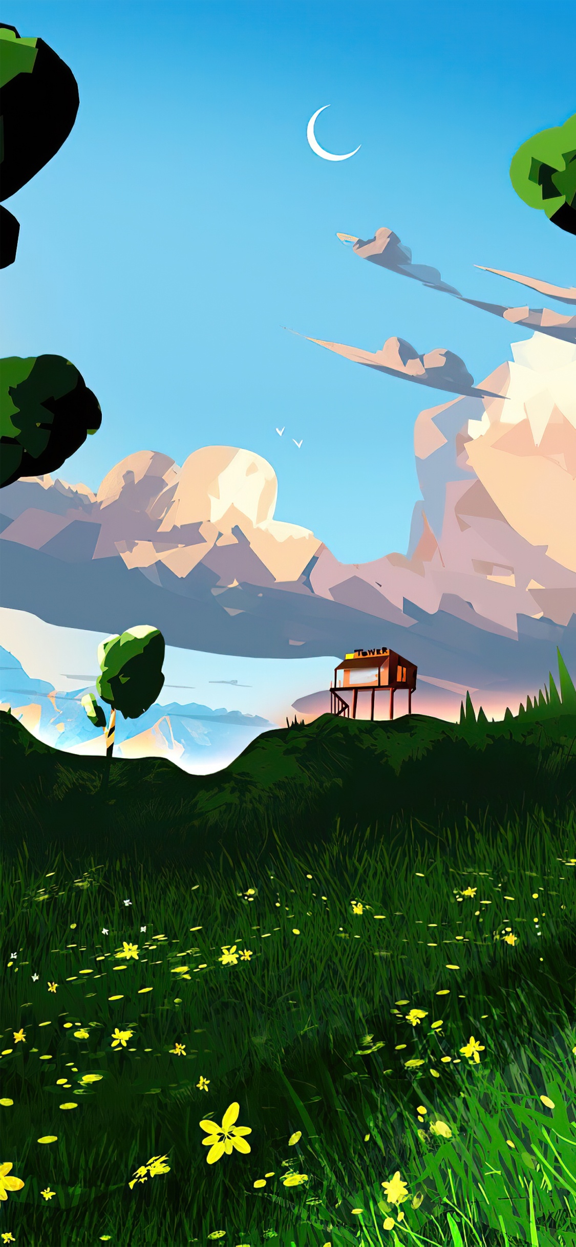 Обои полевой цветок, арт, живопись, рисование, иллюстрация для iPhone X / XS, заставка, 1125x2436 картинка