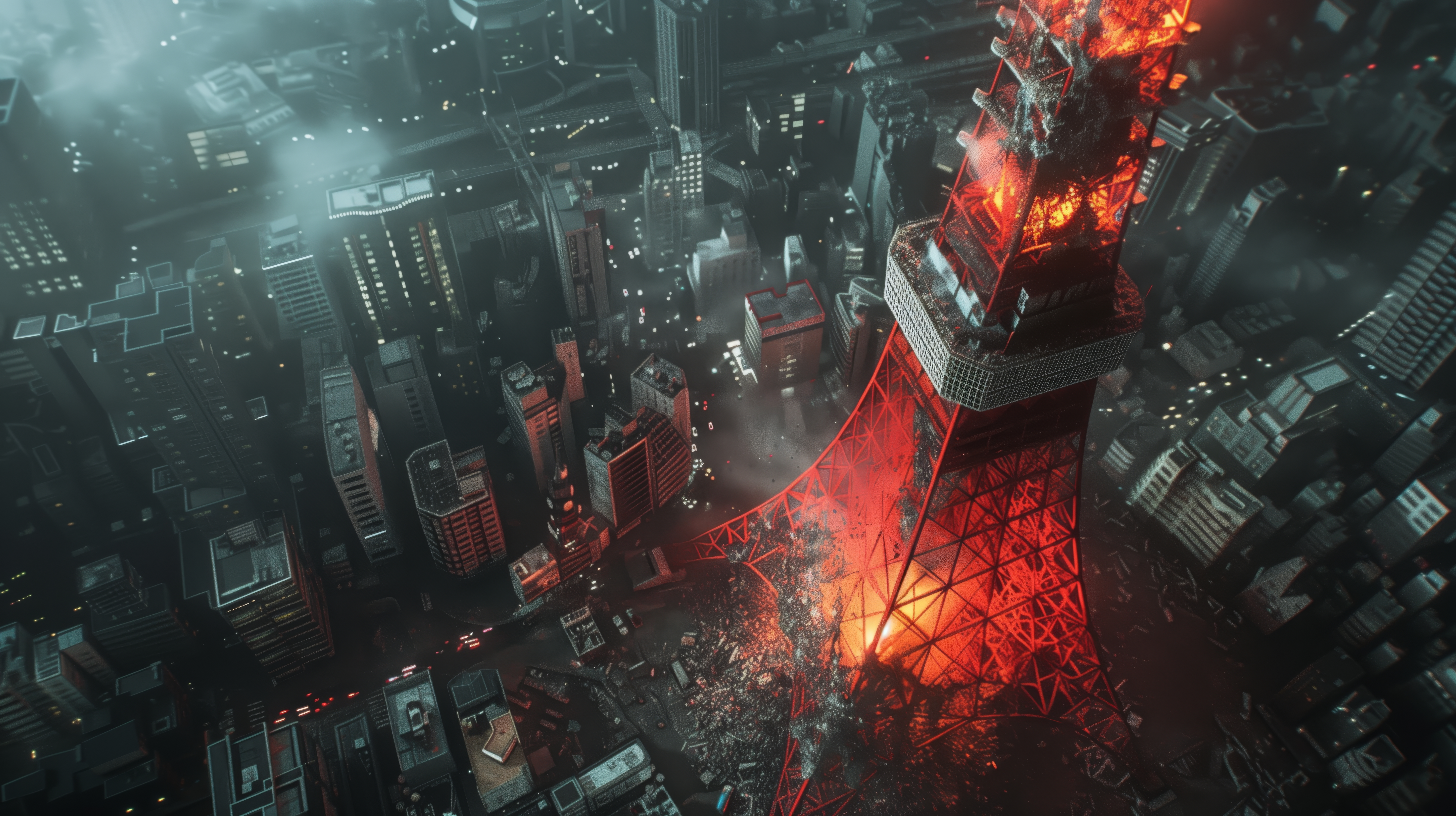 Обои башня, иллюстрация, здание, вышка, газ, фото, заставка
