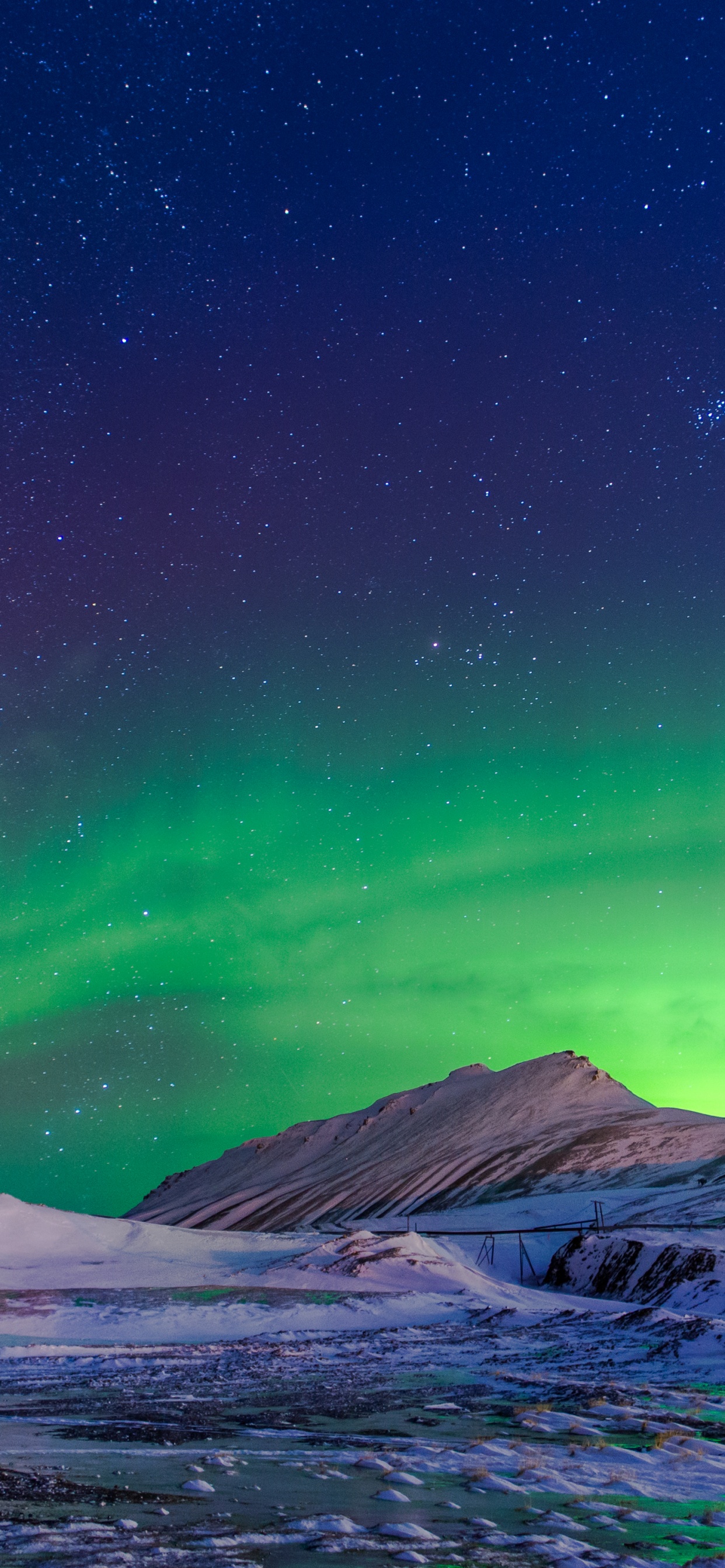 Обои зимнее сияние, Аврора, Свальбард, зима, атмосфера для iPhone XS Max, заставка, 1242x2688 картинка