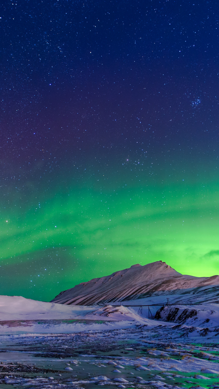 Обои зимнее сияние, Аврора, Свальбард, зима, атмосфера для iPhone 6, 6S, 7, 8, заставка, 750x1334 картинка