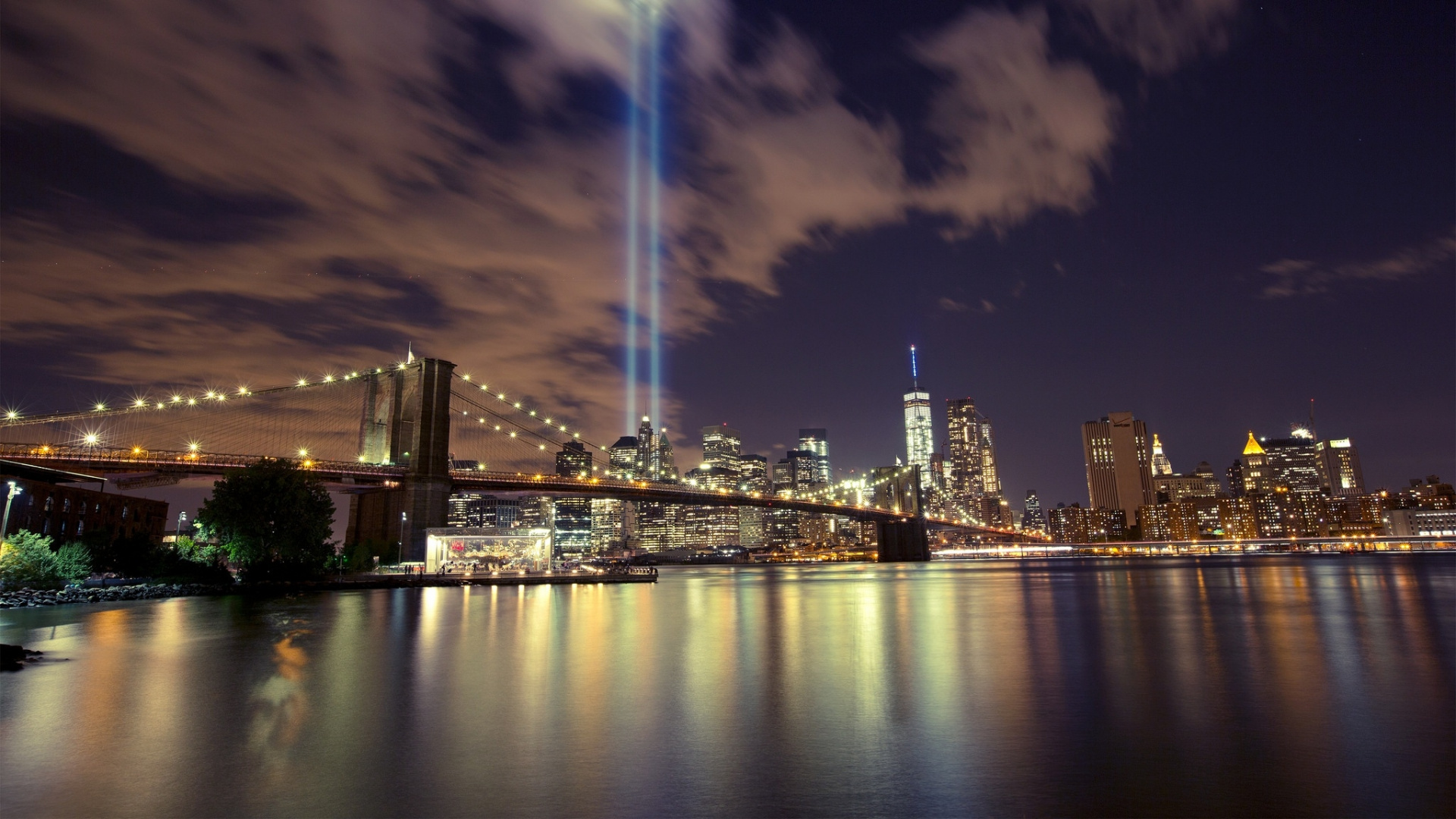 Обои 1920x1080 небоскреб, Бруклинский мост, ночь, городской пейзаж, город, Full HD, HDTV, 1080p 16:9 картинка