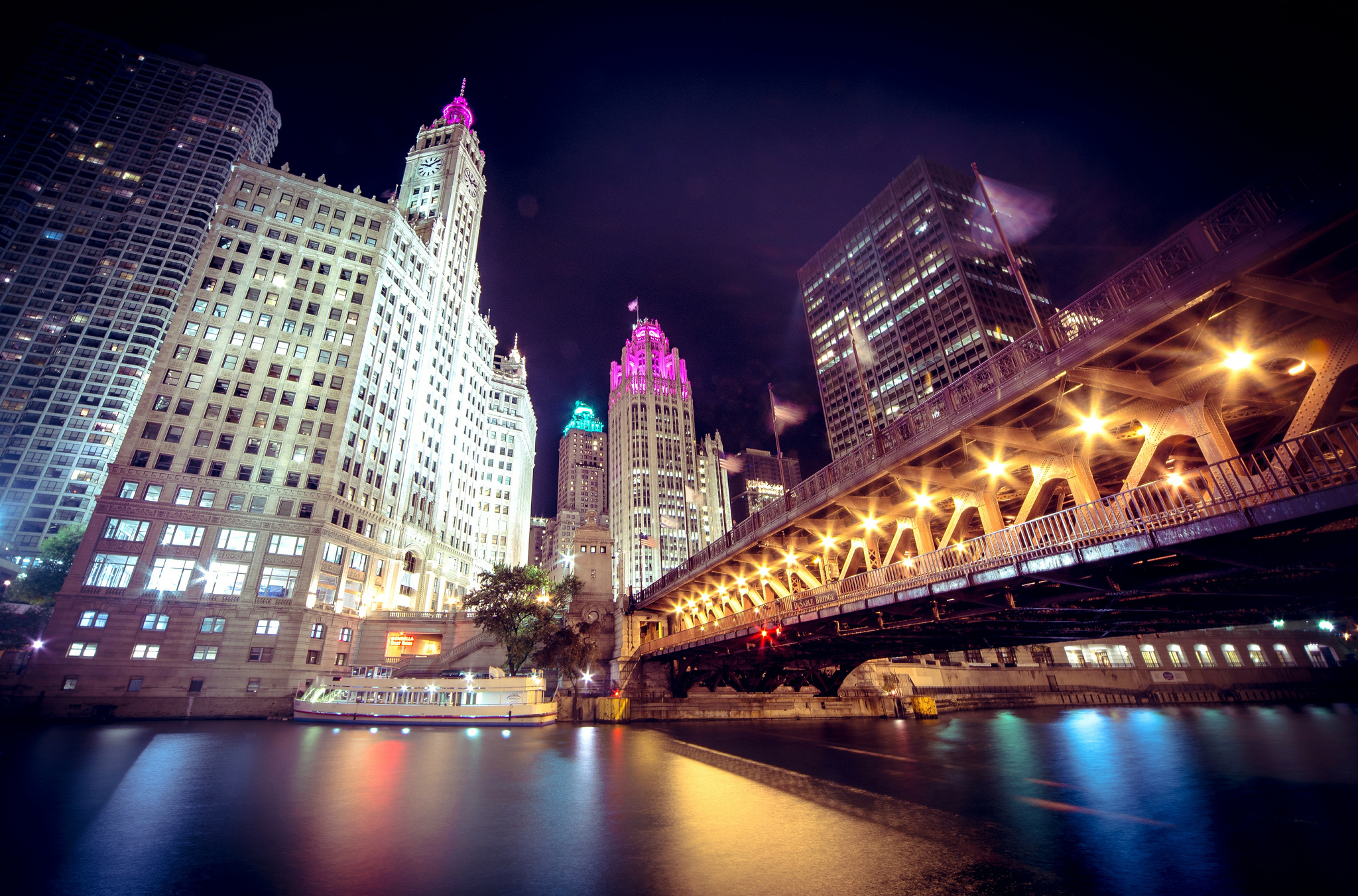 Обои Чикаго, ночь, архитектура, здание, город, фото, заставка