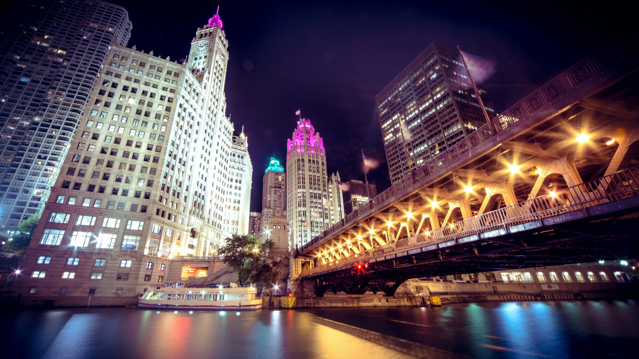 Обои 1280x720 Чикаго, ночь, архитектура, здание, город, HD, HDV, 720p, 16:9 картинка