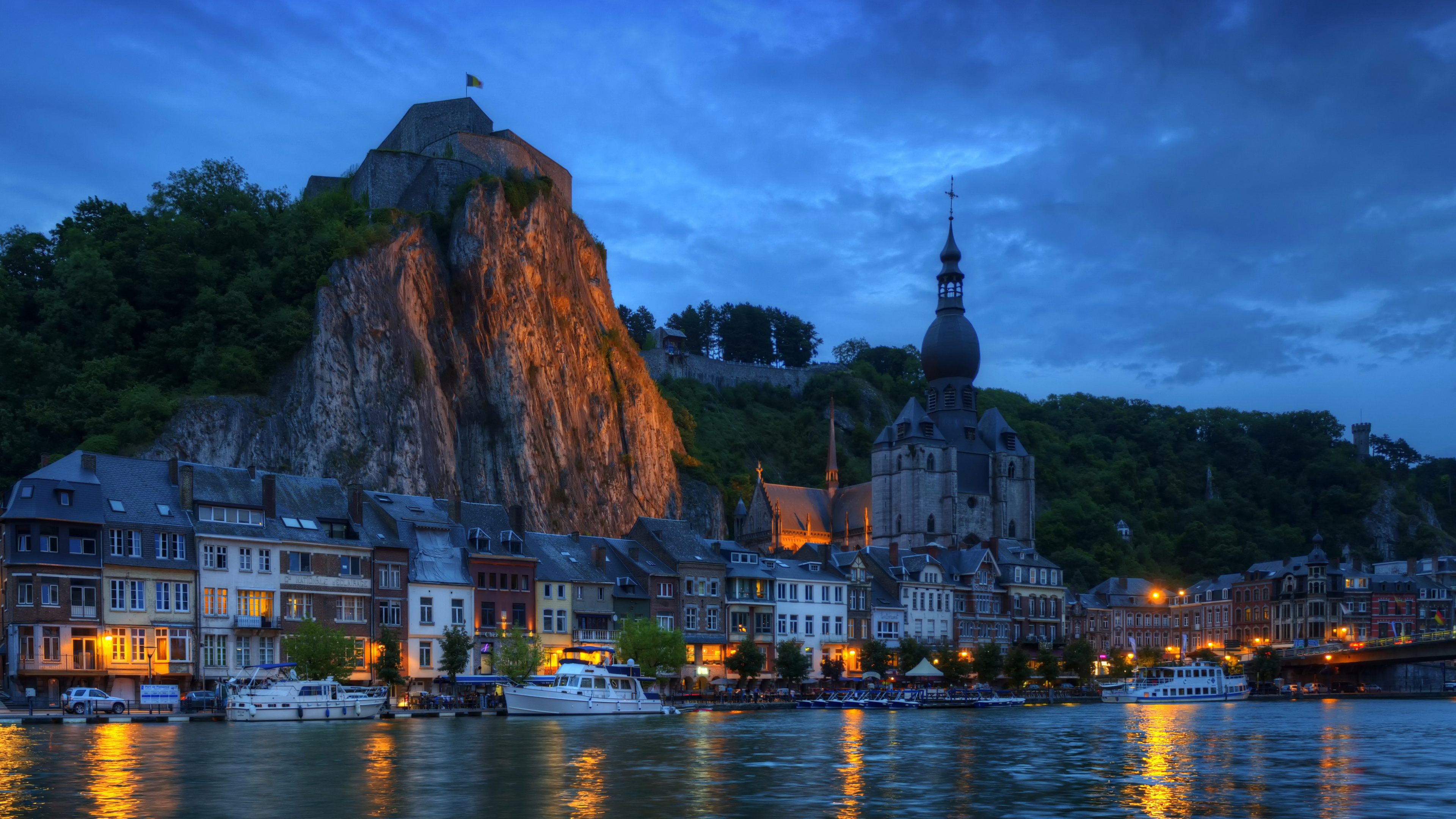Обои 3840x2160 Динан, ориентир, вечер, отражение, город, 4K Ultra HD картинка