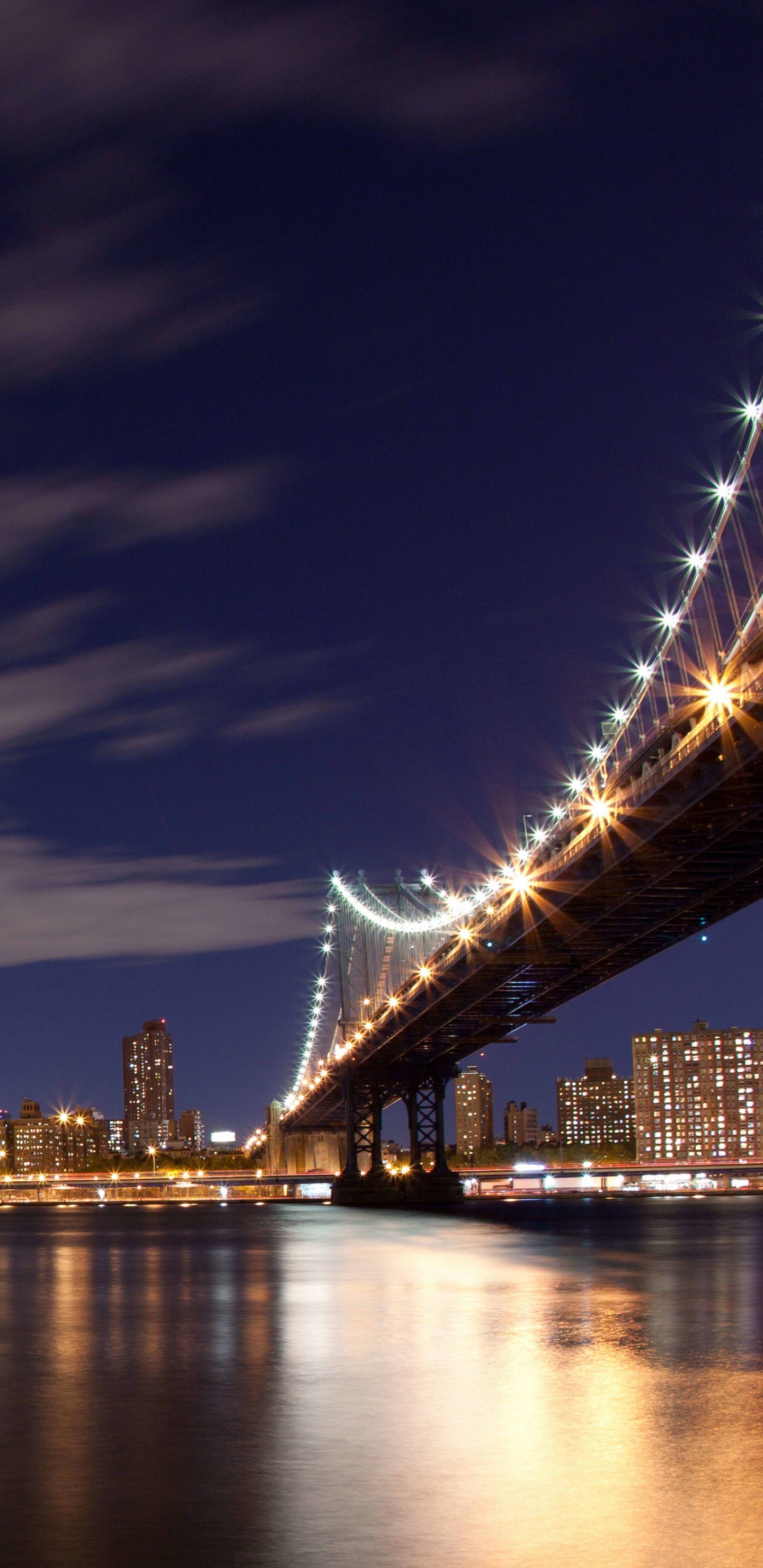 Обои Бруклинский мост, городской пейзаж, город, линия горизонта, ориентир для Samsung Galaxy S8/S8+/S9/S9+/Note 8/Note 9 QHD, заставка, 1440x2960 картинка