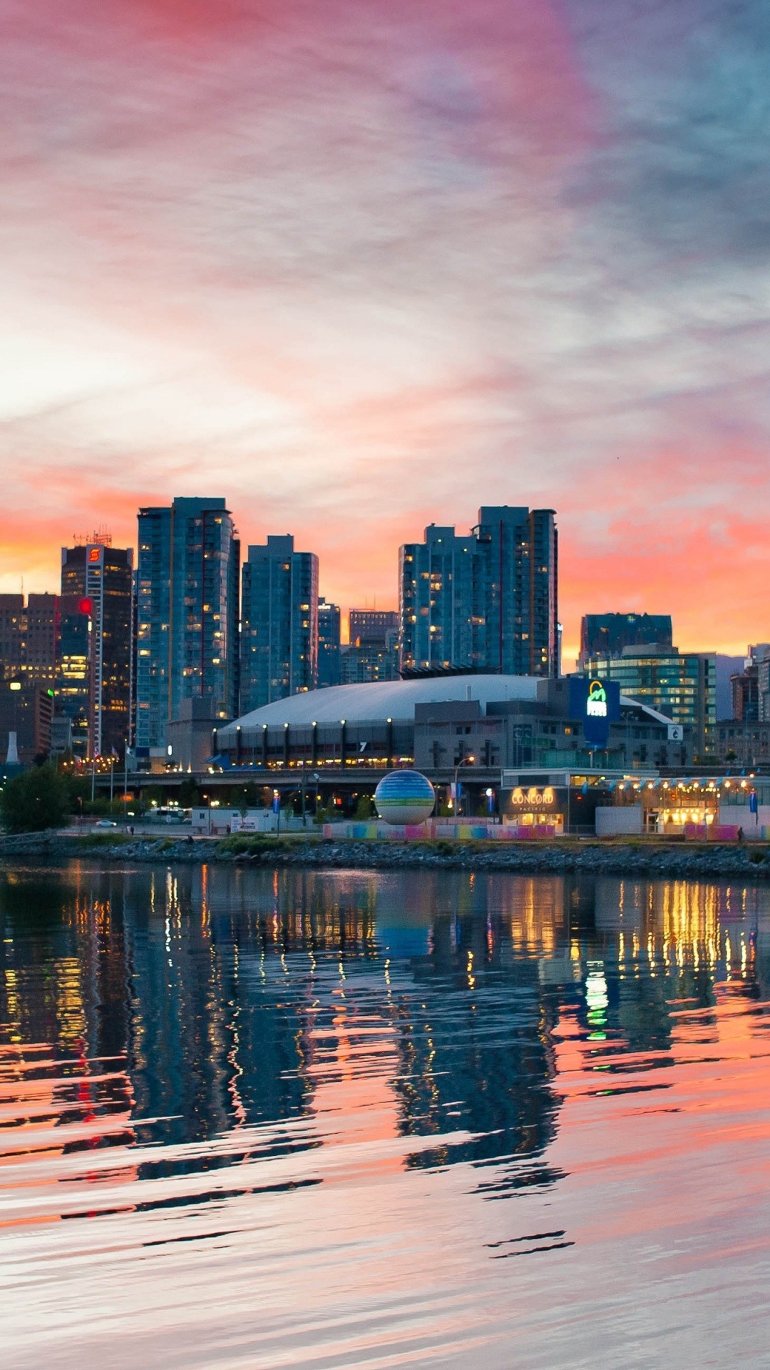 Обои Ванкувер, городской пейзаж, город, линия горизонта, отражение на телефон Android, 1080x1920 Full HD картинки