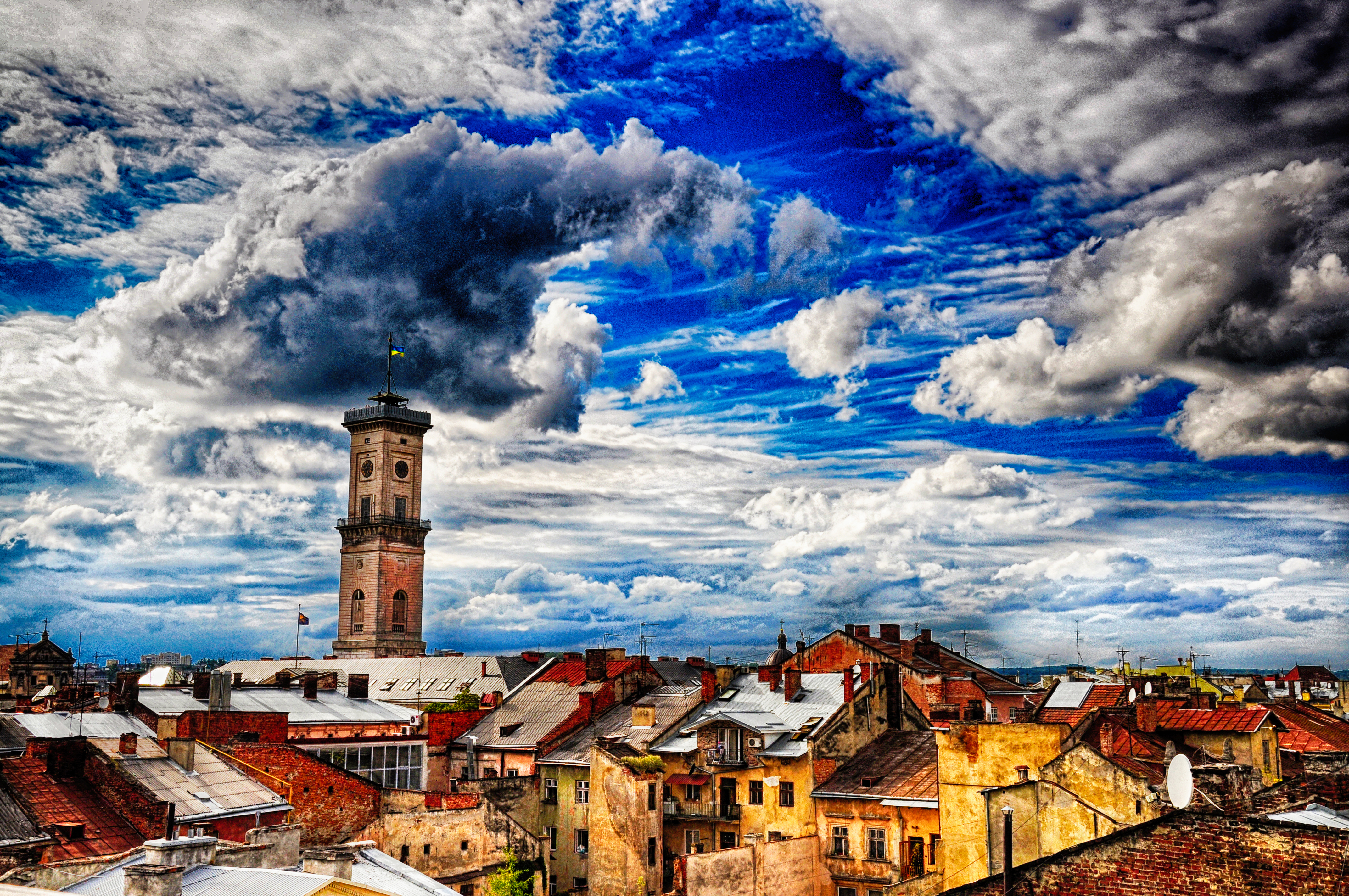 Обои облако, городок, ориентир, дневное время, город, фото, заставка