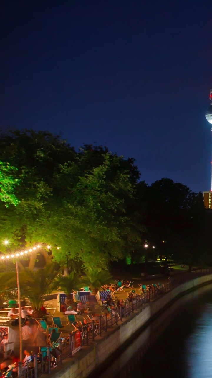Обои Берлин, ночь, водный путь, ориентир, отражение для HD Samsung Galaxy S3/J3/J4/J5, Meizu M5, Sony Xperia L1/L2, заставка, 720x1280 картинка