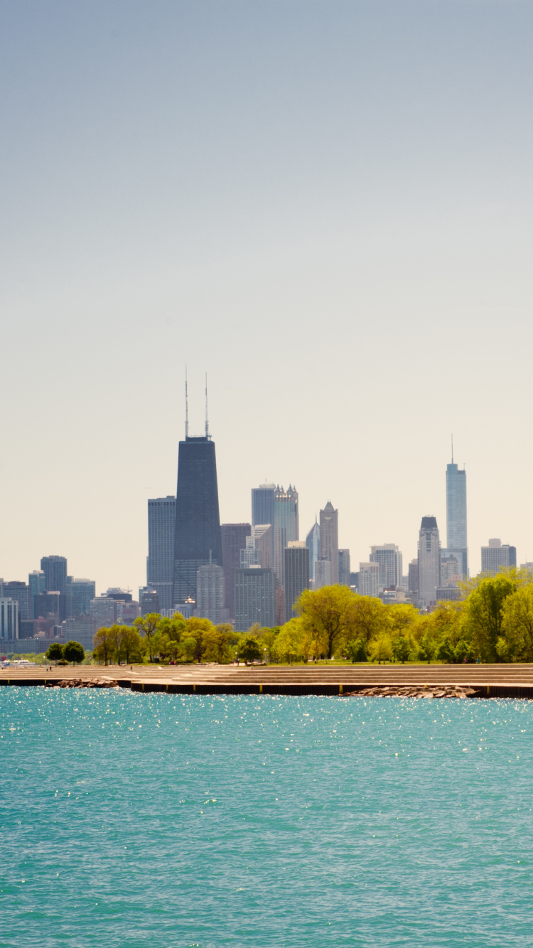 Обои Чикаго, линия горизонта, город, городской пейзаж, дневное время для iPhone 6, 6S, 7, 8, заставка, 750x1334 картинка