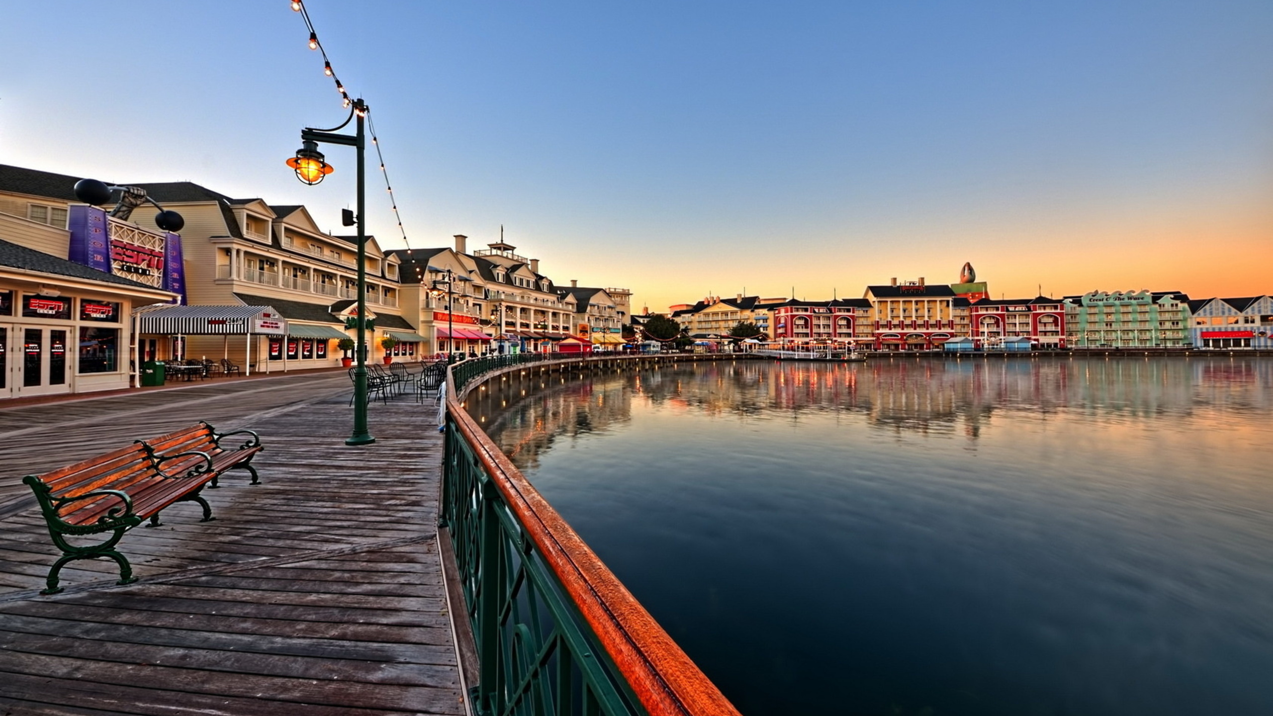 Обои 2560x1440 городок, отражение, водный путь, вечер, утро, WQHD, QHD, 16:9 картинка