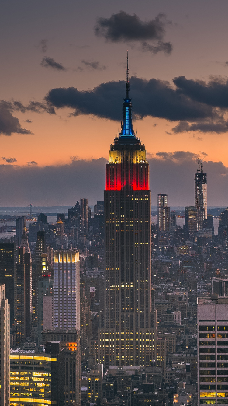 Обои Нью-Йорк, Эмпайр Стейт Билдинг, город, городской пейзаж, городской район для iPhone 6, 6S, 7, 8, заставка, 750x1334 картинка