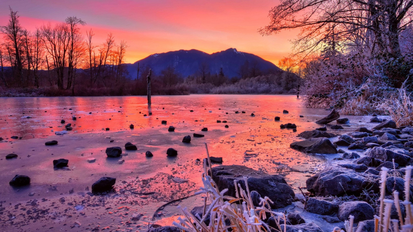 Обои 1366x768 закат, природа, снег, утро, замораживание, HD ready картинка
