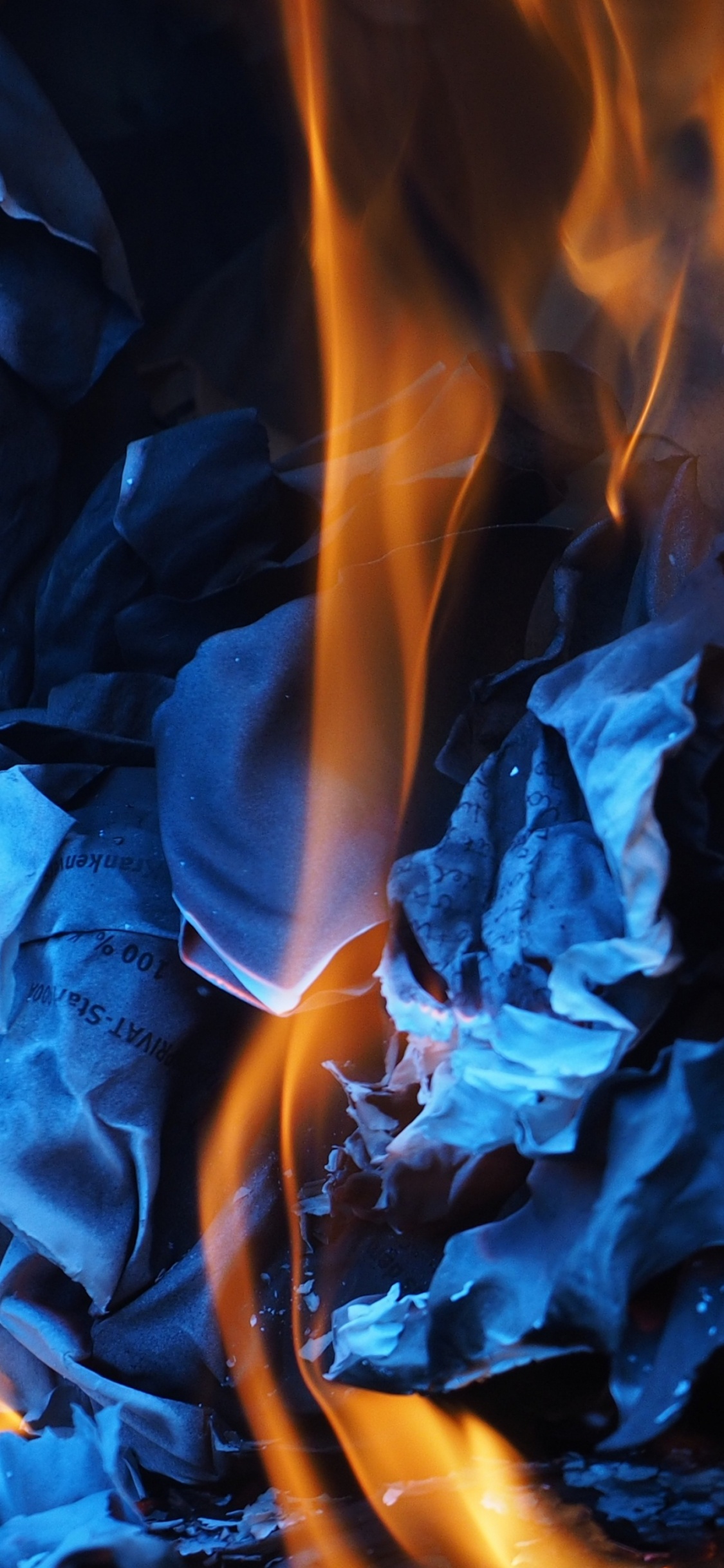 Обои огонь, тепло, желтый, синий цвет, синий для iPhone X / XS, заставка, 1125x2436 картинка