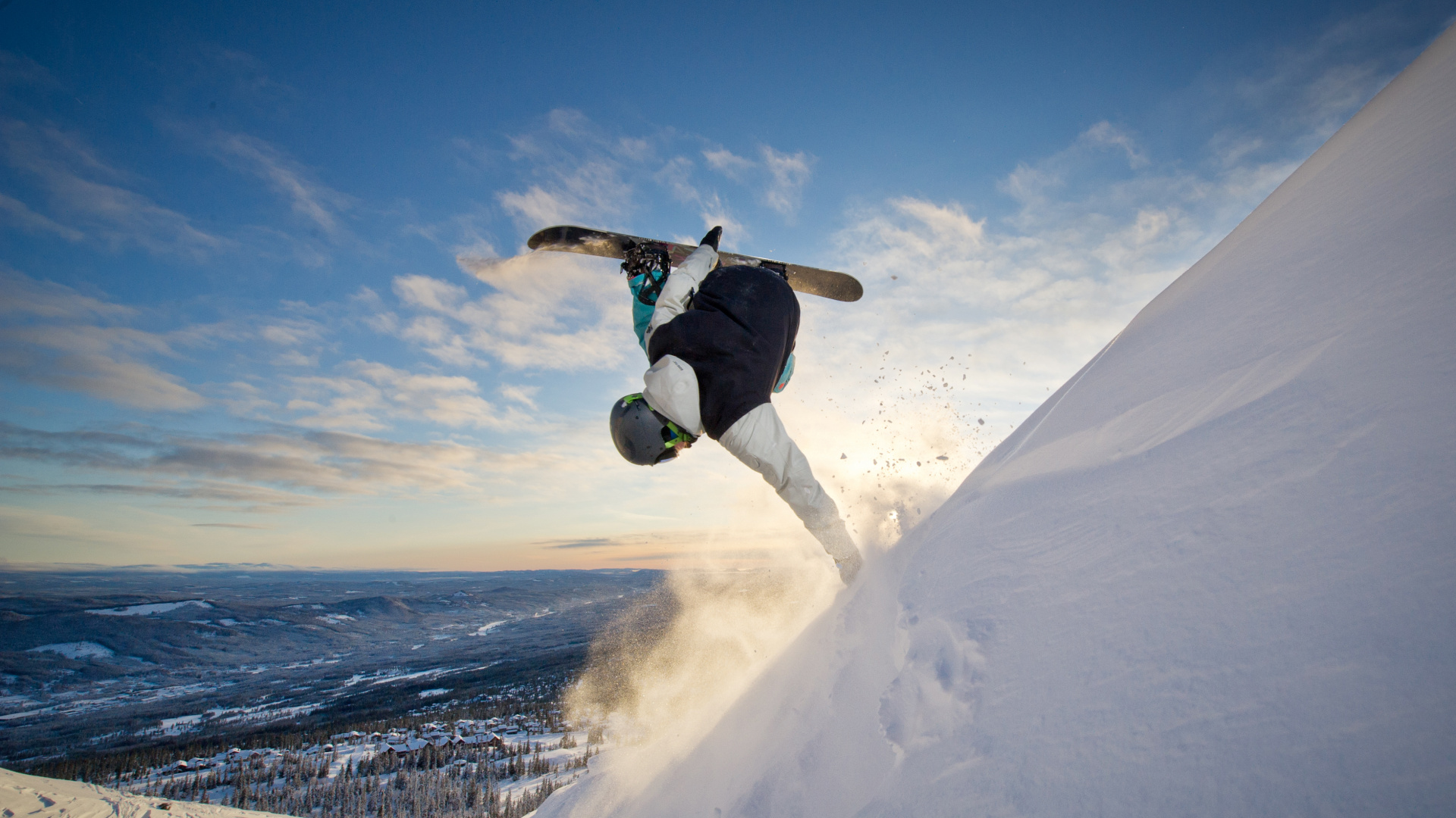 Обои 1920x1080 сноуборд, экстремальный вид спорта, лыжи, снег, зимний спорт, Full HD, HDTV, 1080p 16:9 картинка