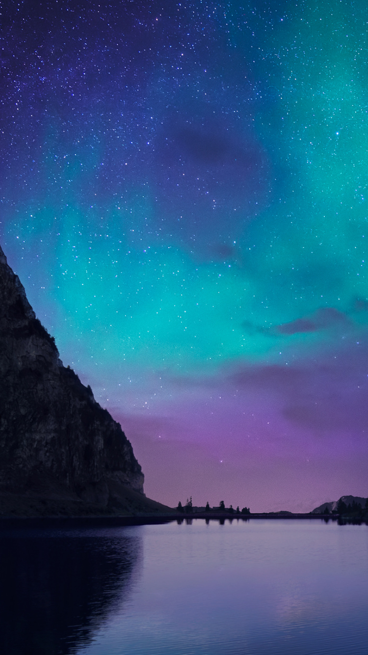 Обои Аврора, природа, ночь, атмосфера, пейзаж для iPhone 6, 6S, 7, 8, заставка, 750x1334 картинка