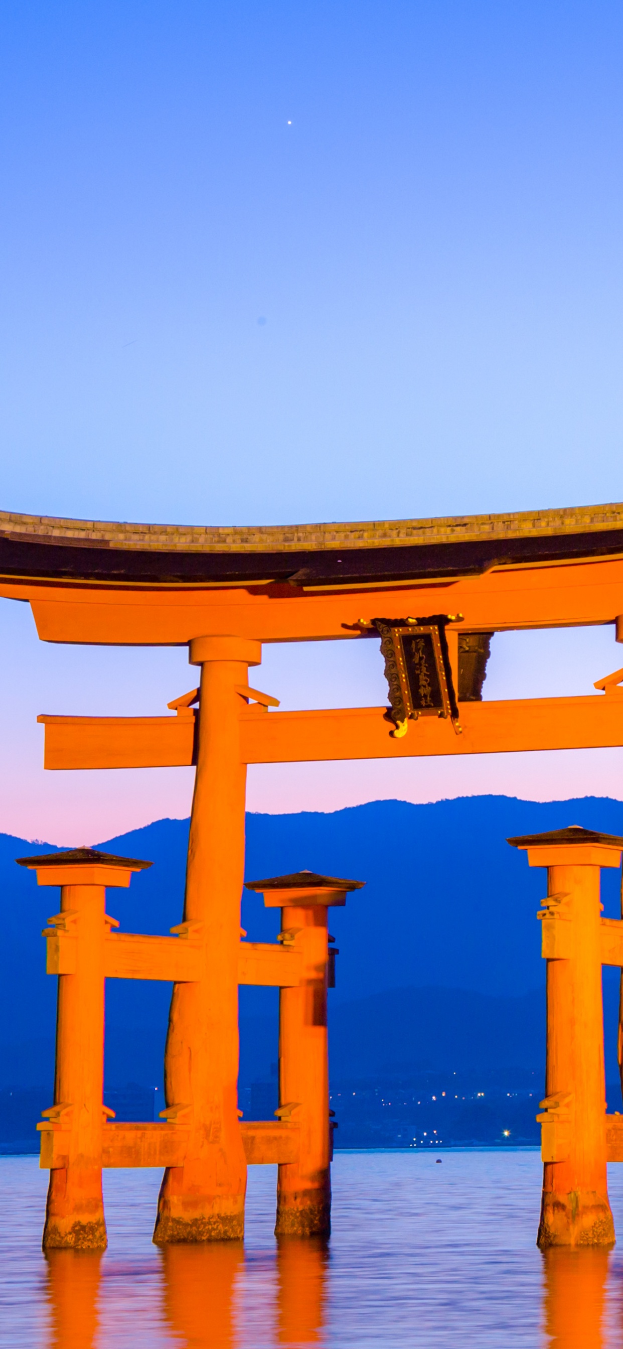 Обои ицукусима, тории, синтоистский храм, спокойный, спокойствие для iPhone XS Max, заставка, 1242x2688 картинка