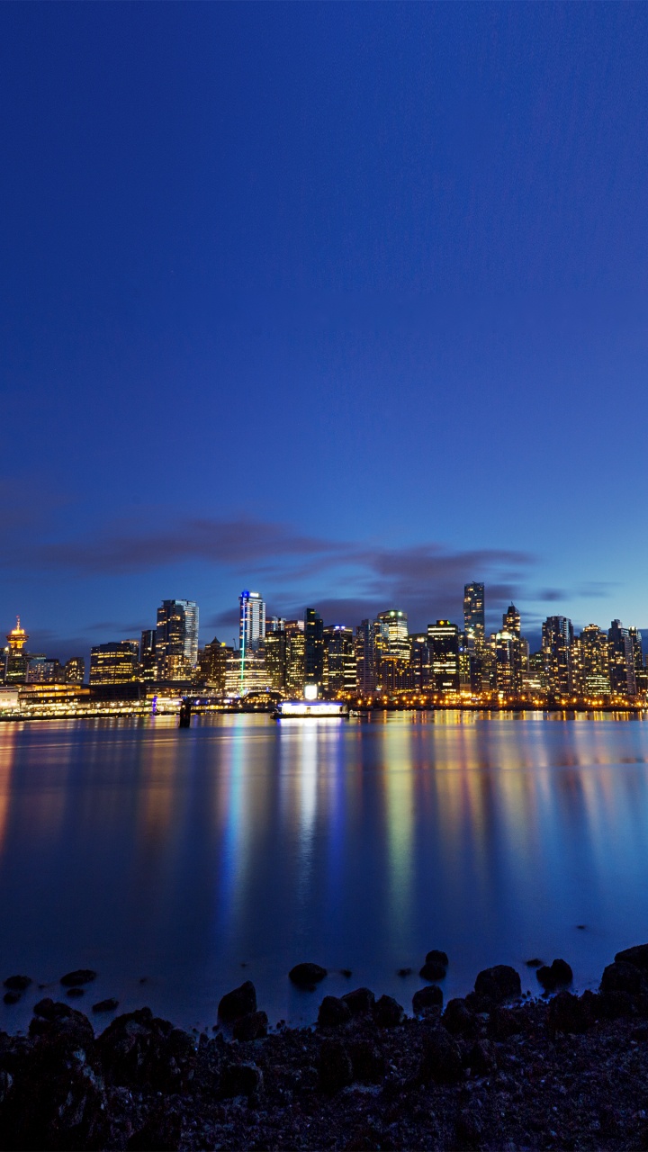 Обои вода, море, горизонт, отражение, город для HD Samsung Galaxy S3/J3/J4/J5, Meizu M5, Sony Xperia L1/L2, заставка, 720x1280 картинка