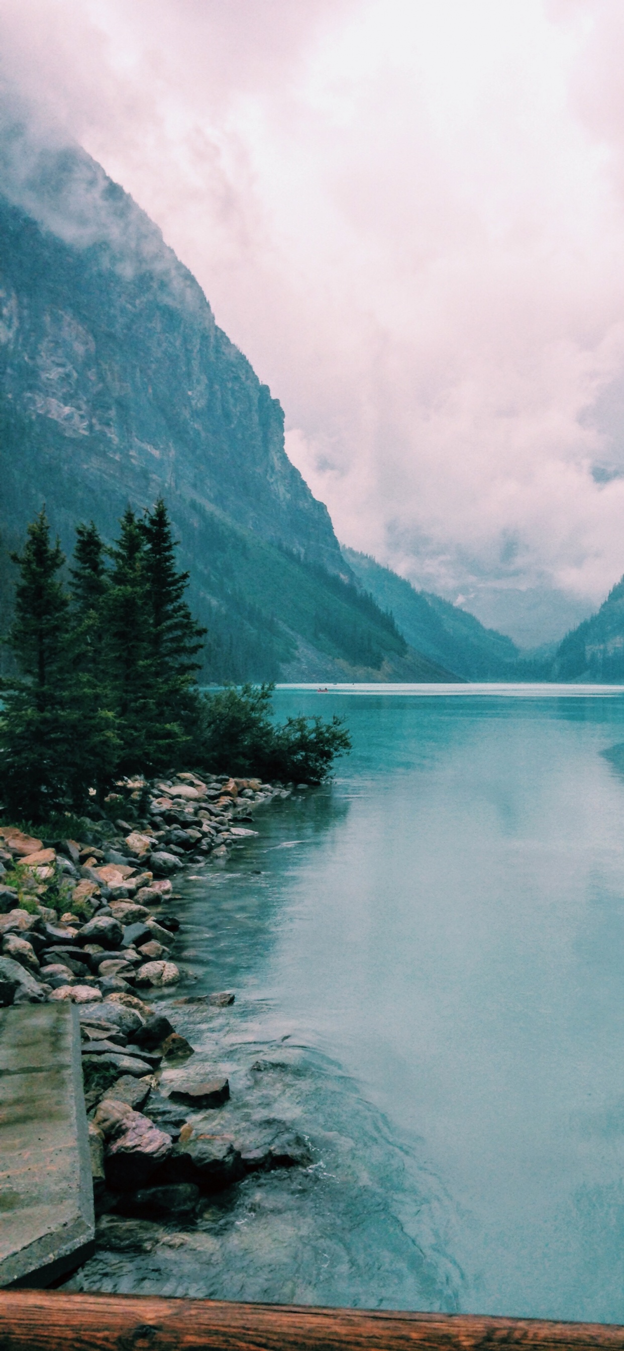 Обои озеро Луиза, озеро, ледниковое озеро, природа, гора для iPhone XS Max, заставка, 1242x2688 картинка