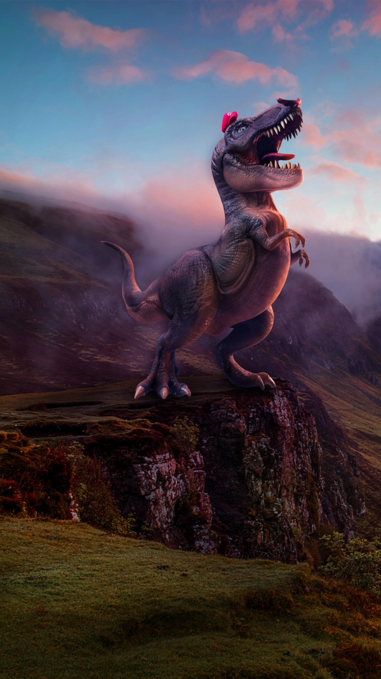 Обои пейзаж, гора, динозавр, холм для iPhone 6, 6S, 7, 8, заставка, 750x1334 картинка
