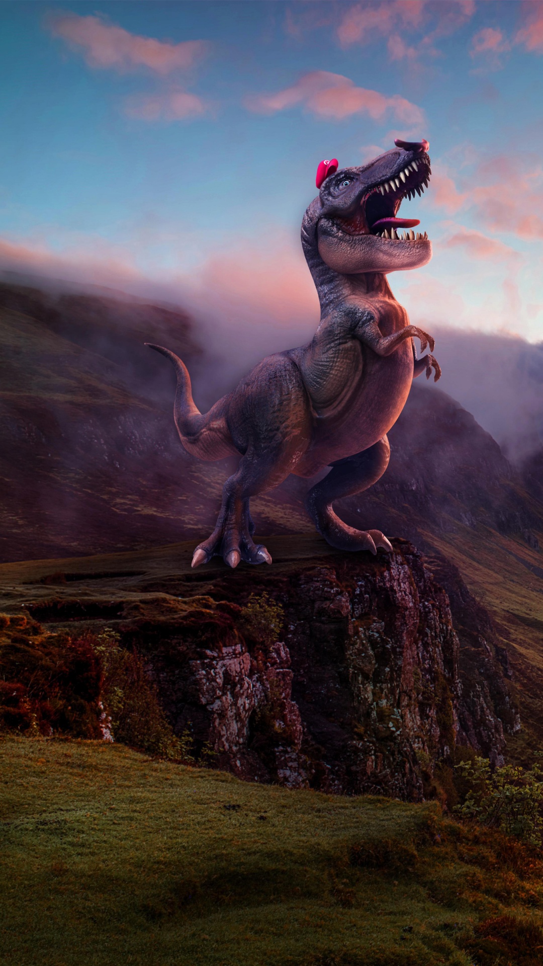 Обои пейзаж, гора, динозавр, холм для iPhone 6S+/7+/8+, заставка, 1080x1920 картинка