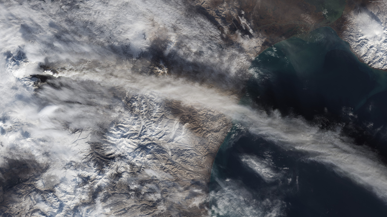Обои 1280x720 земля, облако, вулкан, ключевская сопка, вода, HD, HDV, 720p, 16:9 картинка