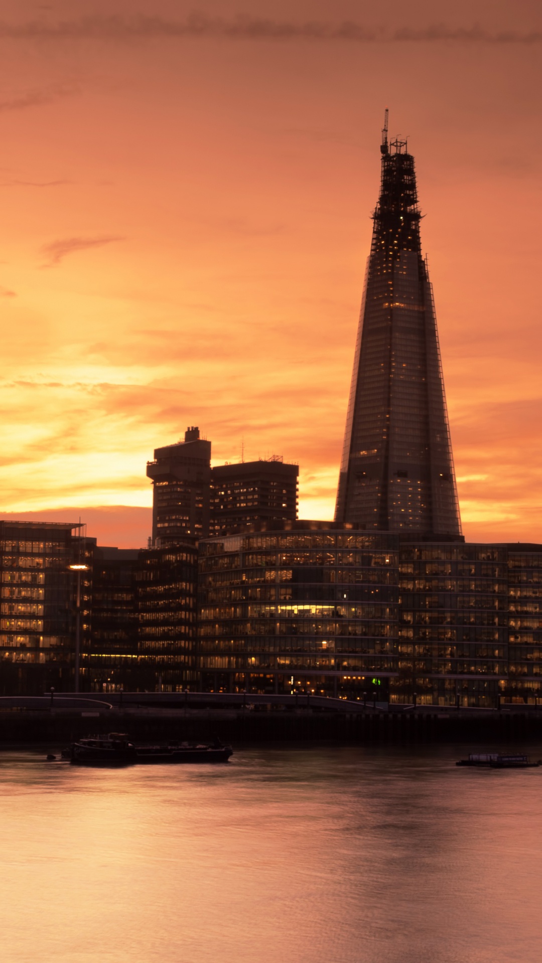 Обои река темза, закат, город, городской пейзаж, линия горизонта для iPhone 6S+/7+/8+, заставка, 1080x1920 картинка