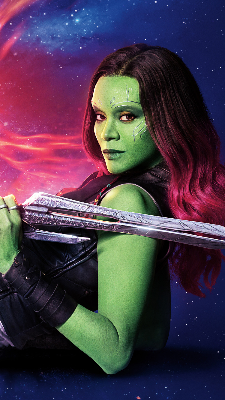 Обои Гамора, Стар-Лорд, marvel, космос, пространство для iPhone 6, 6S, 7, 8, заставка, 750x1334 картинка