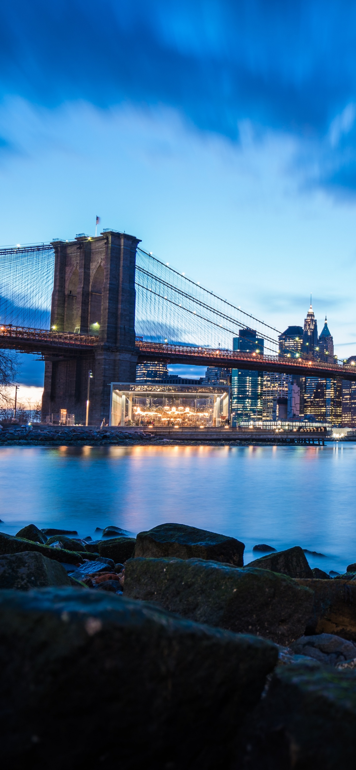 Обои Бруклинский мост, мост, городской пейзаж, город, линия горизонта для iPhone XS Max, заставка, 1242x2688 картинка