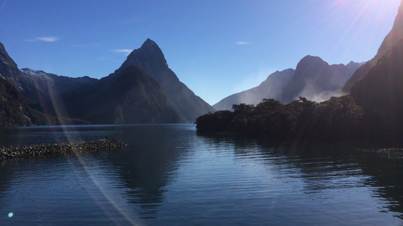 Обои 1280x720 милфорд саунд, фьорд, гора, природа, нагорье, HD, HDV, 720p, 16:9 картинка