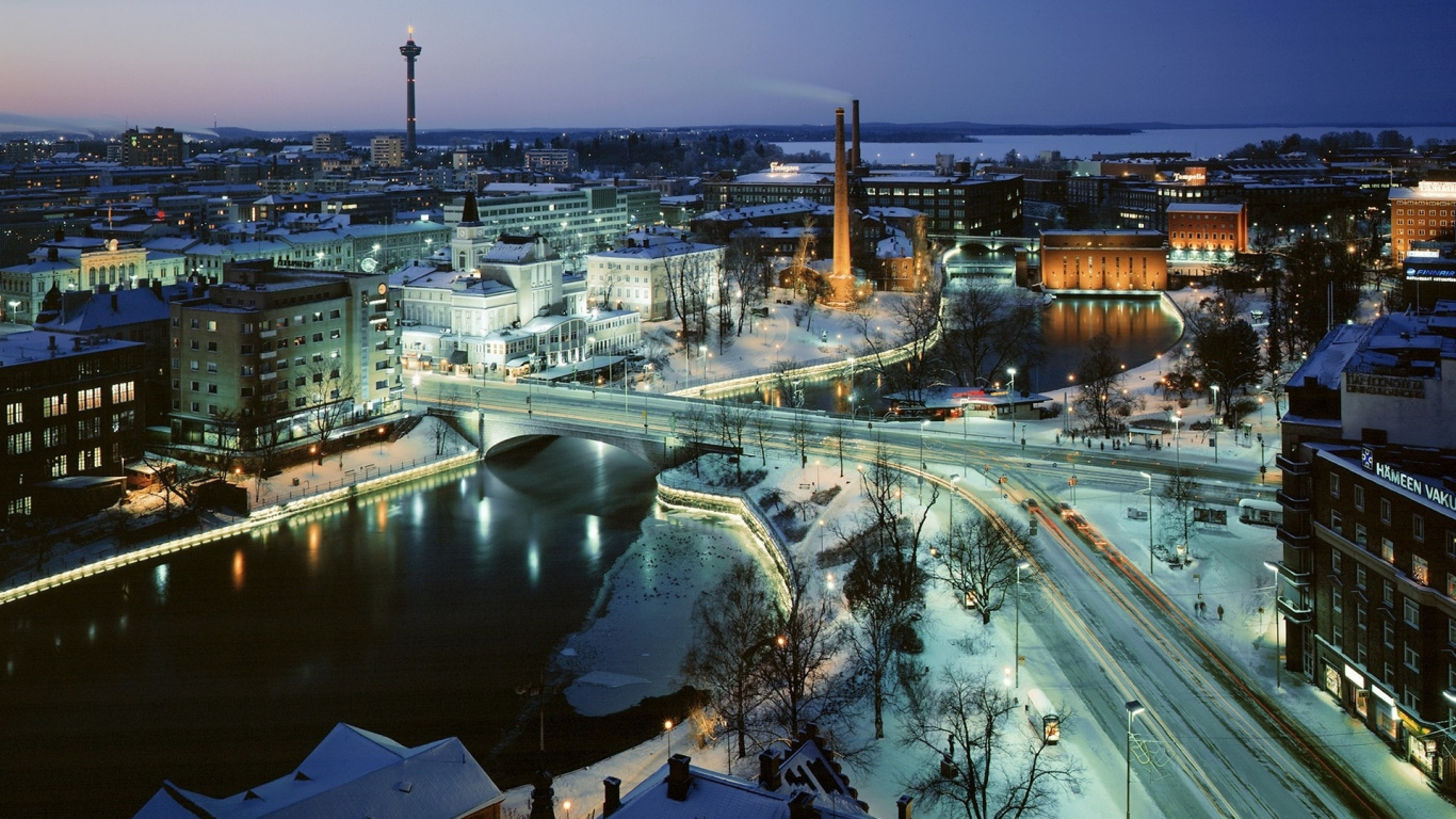Обои 1366x768 Хельсинки, городской пейзаж, городской район, город, ночь, HD ready картинка