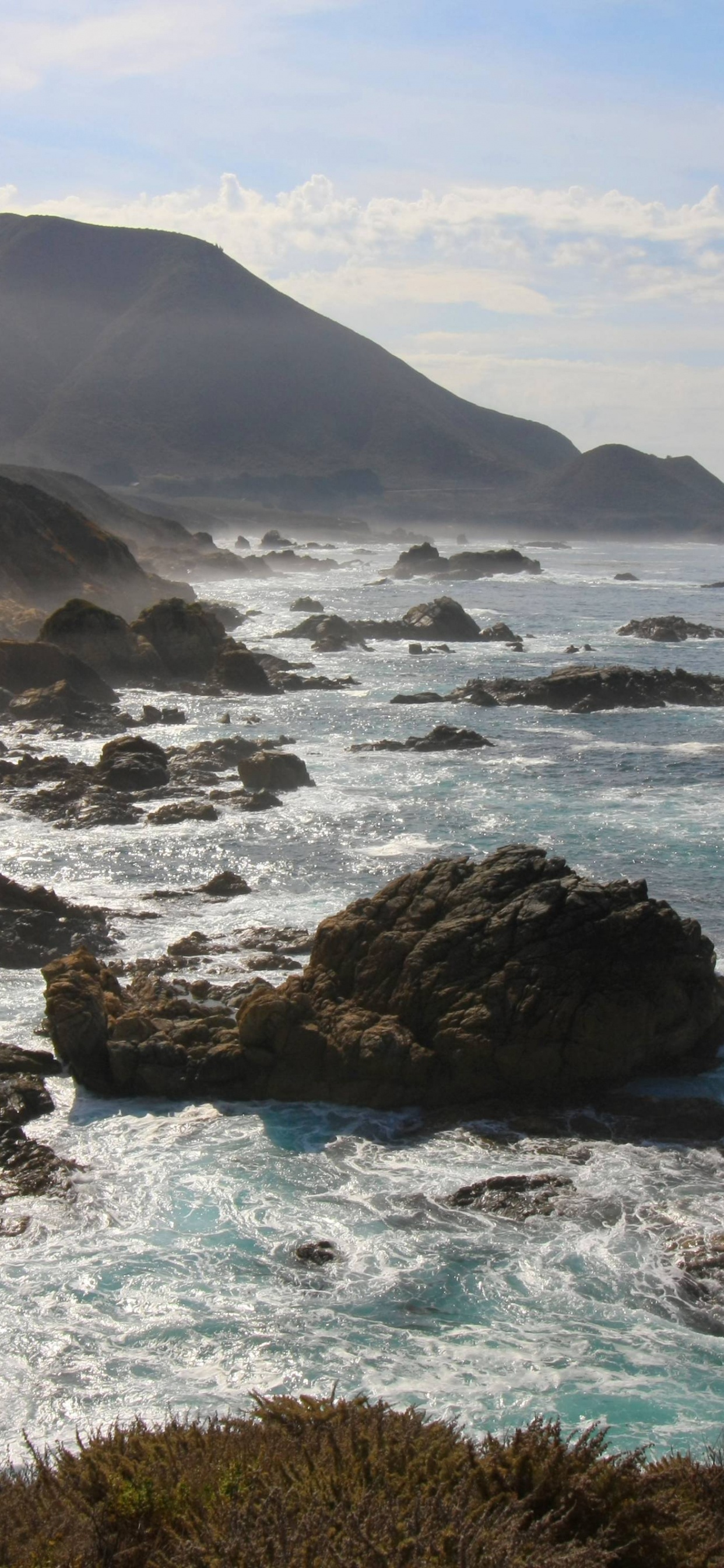 Обои побережье, плащ, берег, море, мыс для iPhone XS Max, заставка, 1242x2688 картинка
