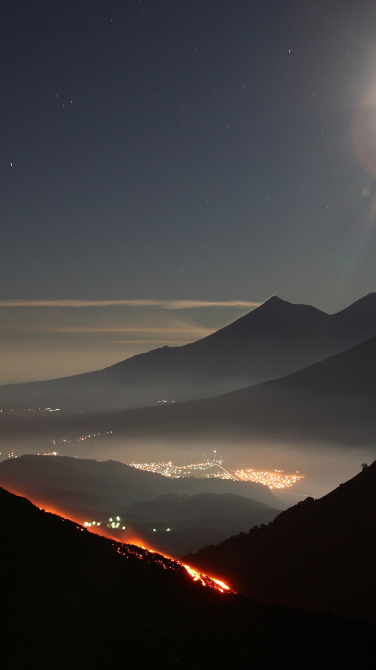 Обои пакае, агатенанго, вулкан, свет, ночь для iPhone 6, 6S, 7, 8, заставка, 750x1334 картинка