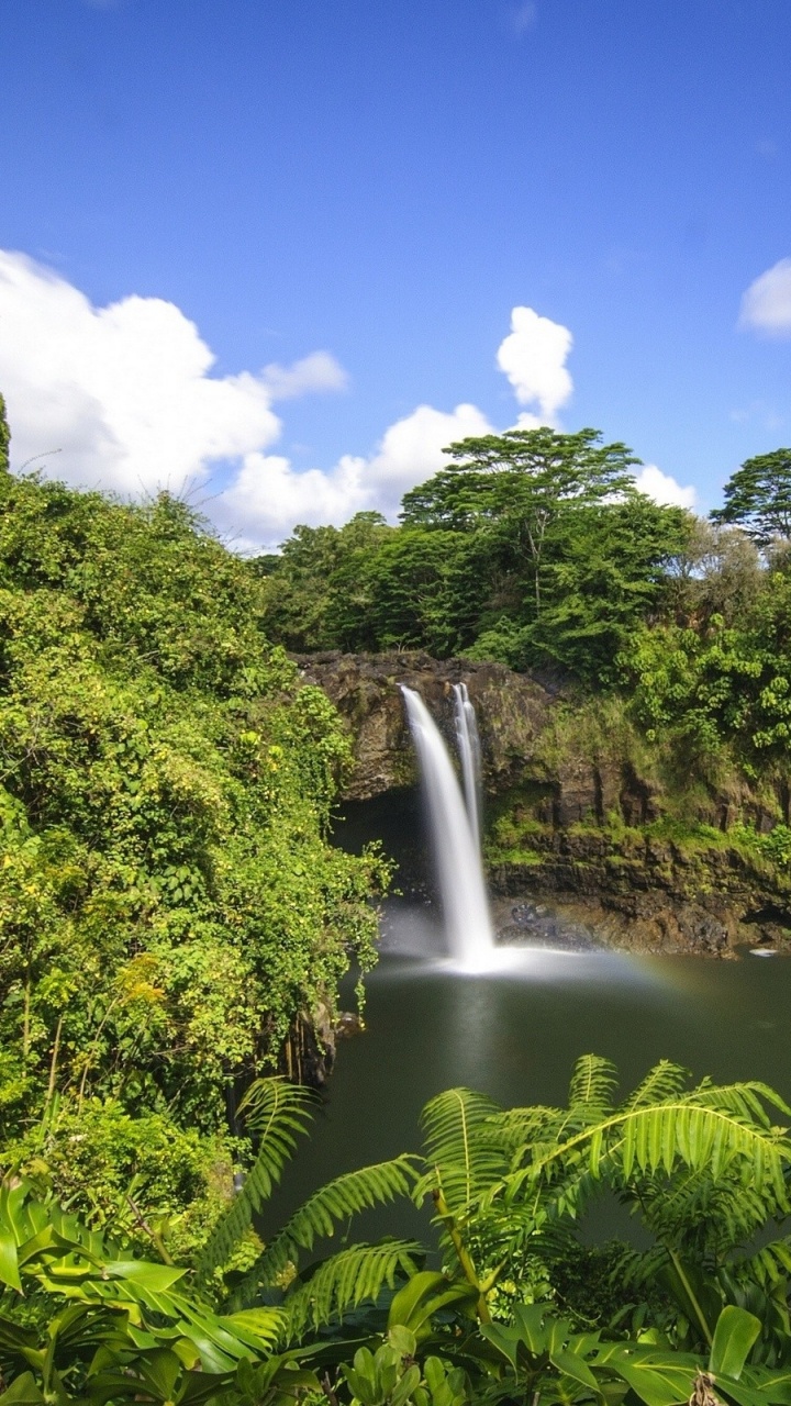 Обои Радужный водопад, гидроресурсы, растительность, природа, водоем для HD Samsung Galaxy S3/J3/J4/J5, Meizu M5, Sony Xperia L1/L2, заставка, 720x1280 картинка