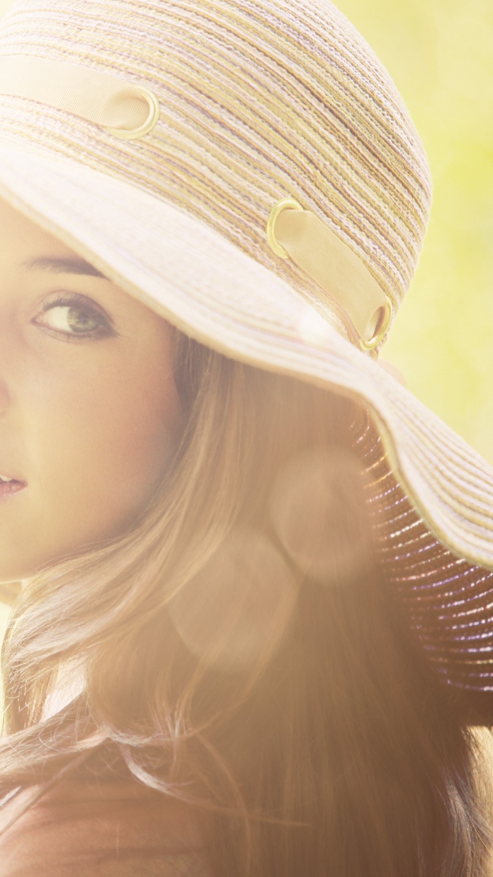 Обои кожа, блондин, шляпа, красота, солнце шляпа для HD Samsung Galaxy S3/J3/J4/J5, Meizu M5, Sony Xperia L1/L2, заставка, 720x1280 картинка