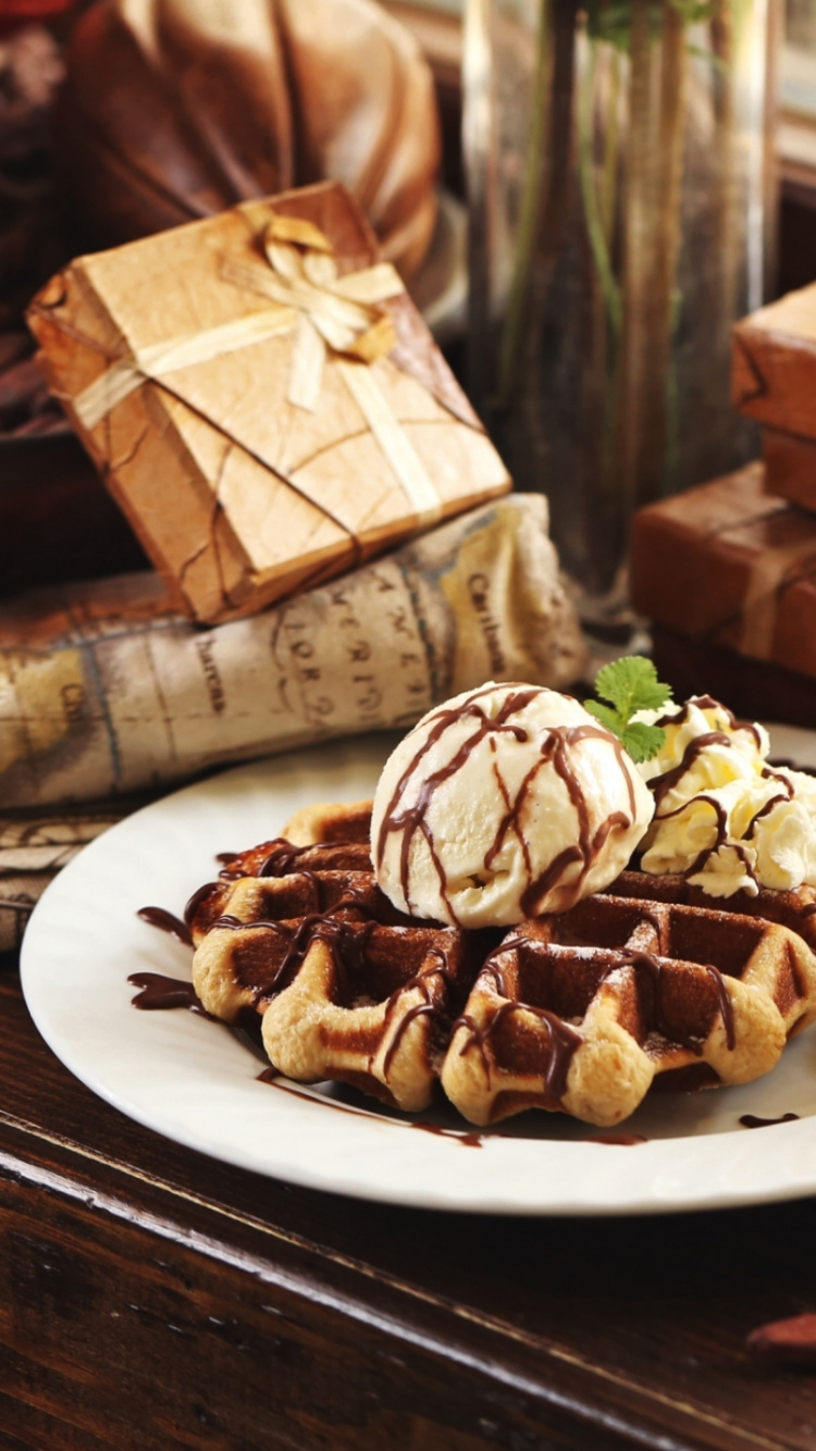 Обои вафля, пища, завтрак, кофе эспрессо, кофеварка для iPhone 6, 6S, 7, 8, заставка, 750x1334 картинка
