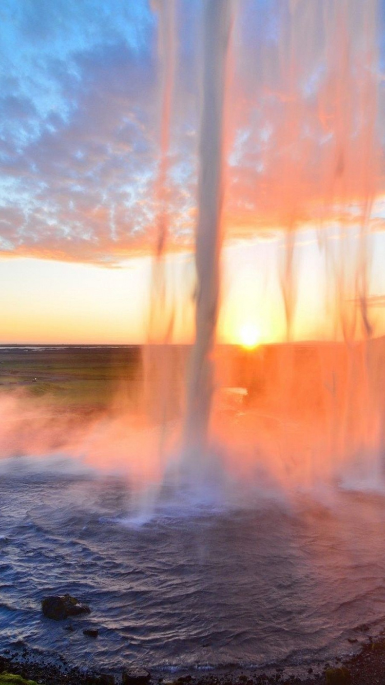 Обои селйяландсфосс, природа, вода, полуночное солнце, небо для iPhone 6, 6S, 7, 8, заставка, 750x1334 картинка