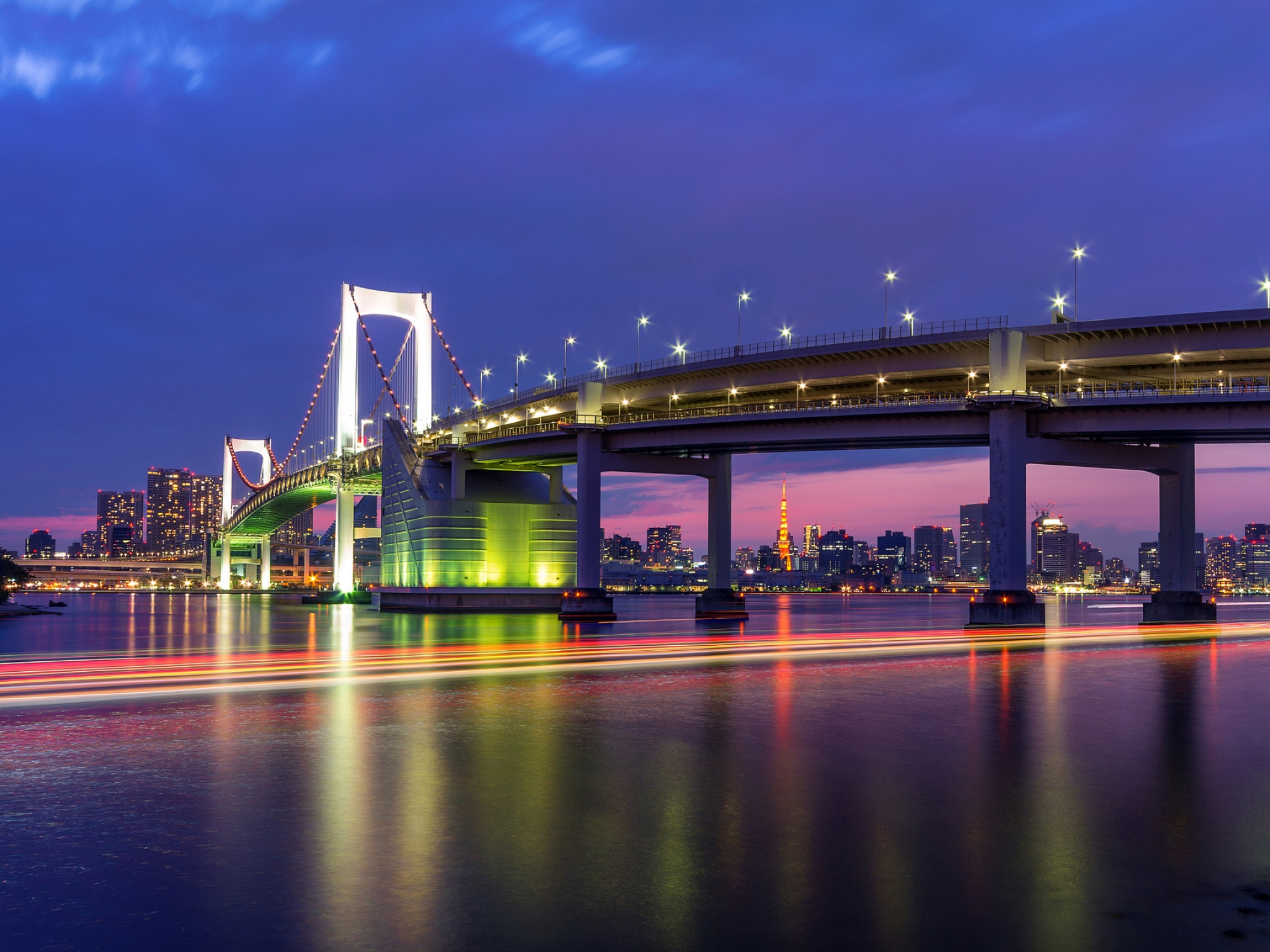 Обои мост, ночь, городской пейзаж, отражение, ориентир, фото, заставка
