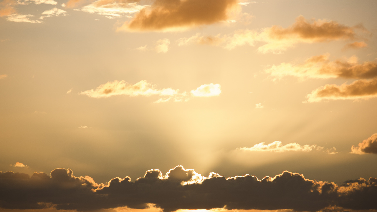 Обои 1280x720 облако, закат, солнечный свет, кучевое облако, горизонт, HD, HDV, 720p, 16:9 картинка