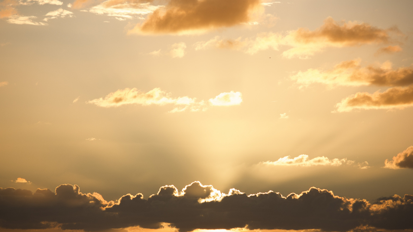 Обои 1366x768 облако, закат, солнечный свет, кучевое облако, горизонт, HD ready картинка