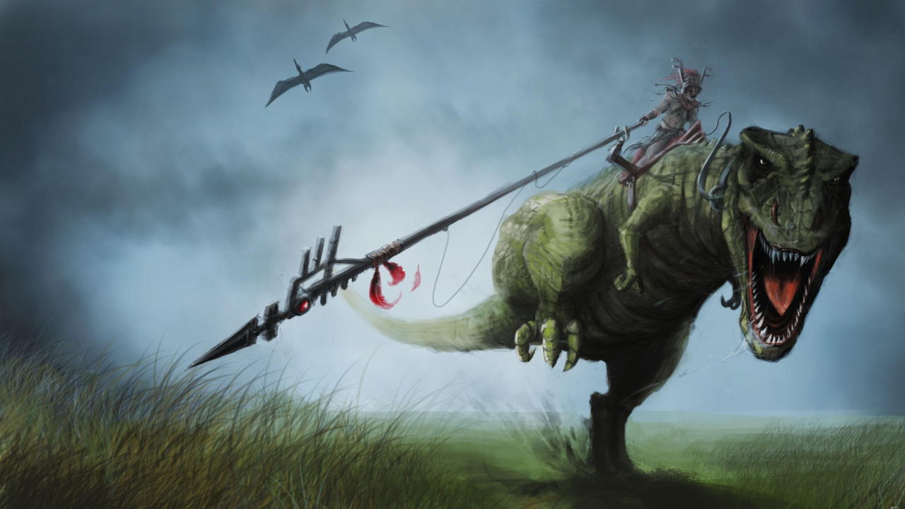 Обои 1280x720 дракон, всадник, облако, создание оружия, дерево, HD, HDV, 720p, 16:9 картинка