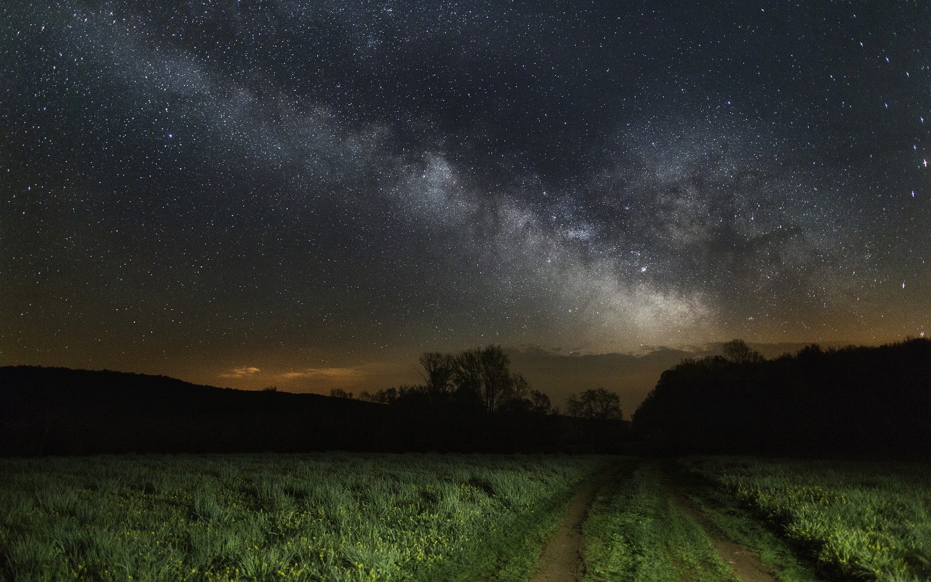 Обои природа, ночь, дерево, звезда, небо, фото, заставка