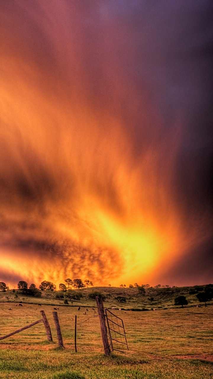 Обои закат, облако, дерево, сельский район, послесвечение для HD Samsung Galaxy S3/J3/J4/J5, Meizu M5, Sony Xperia L1/L2, заставка, 720x1280 картинка