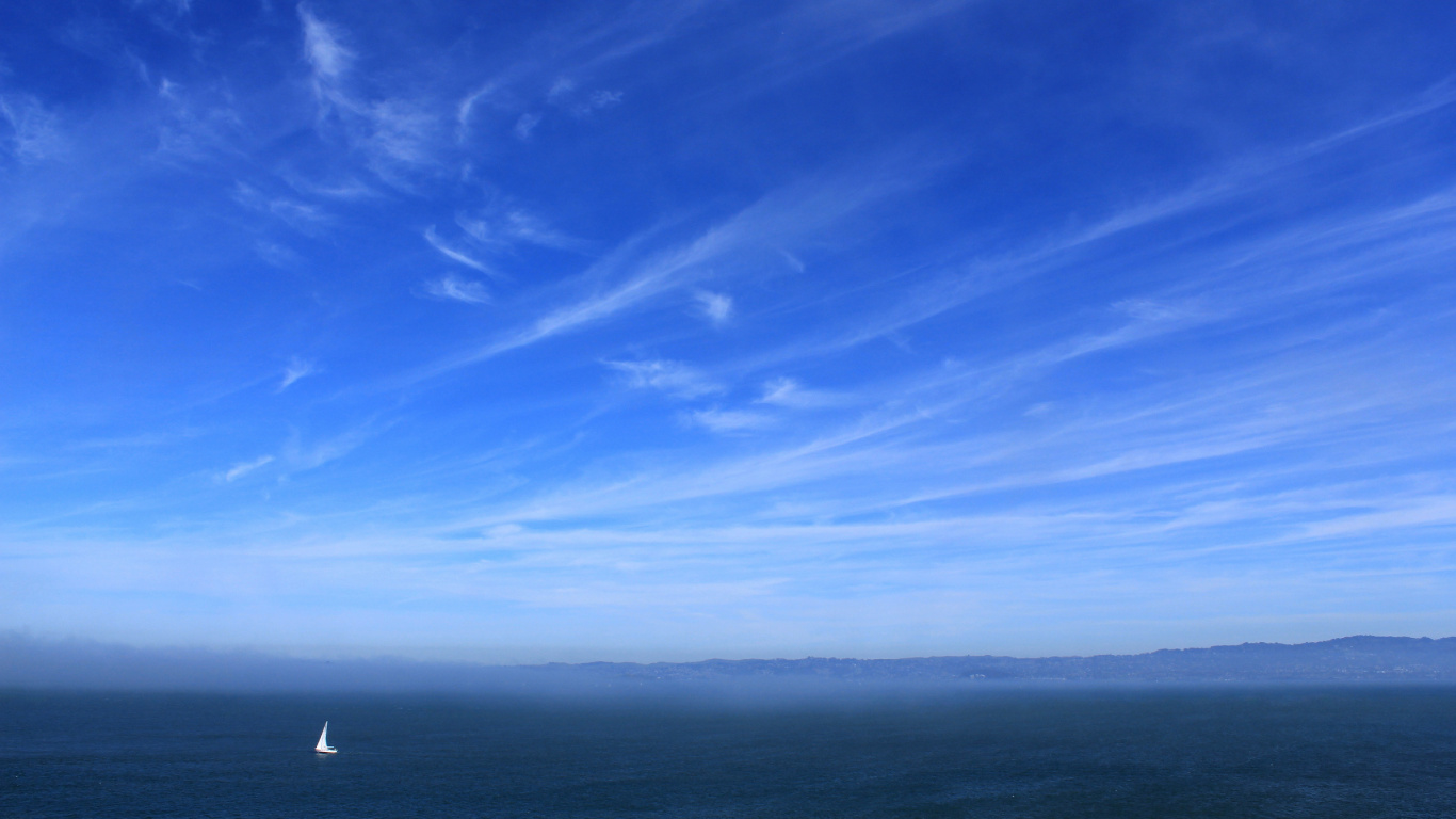 Обои 1366x768 горизонт, море, океан, облако, берег, HD ready картинка