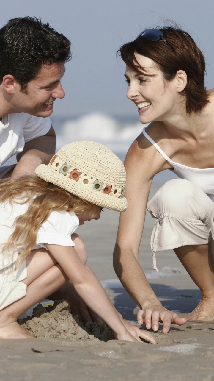 Обои забава, отпуск, семья, песок, ребенок для HD Samsung Galaxy S3/J3/J4/J5, Meizu M5, Sony Xperia L1/L2, заставка, 720x1280 картинка
