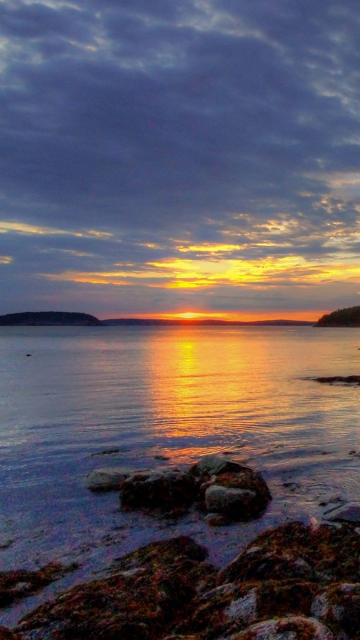 Обои закат, море, горизонт, побережье, берег для HD Samsung Galaxy S3/J3/J4/J5, Meizu M5, Sony Xperia L1/L2, заставка, 720x1280 картинка