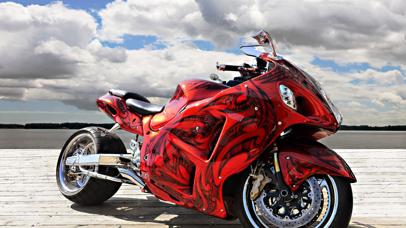 Обои 1366x768 мотоцикл, спортивный мотоцикл, автомобильные шины, авто, кастомный мотоцикл, HD ready картинка