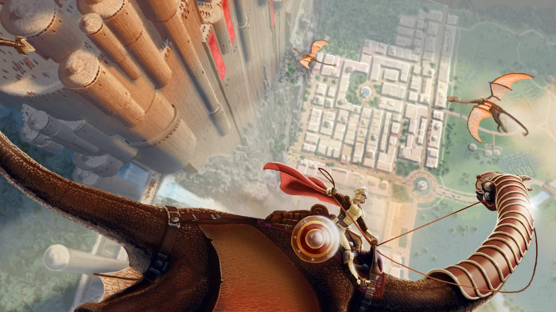 Обои 1920x1080 дракон, воин, cg работы, небо, Full HD, HDTV, 1080p 16:9 картинка