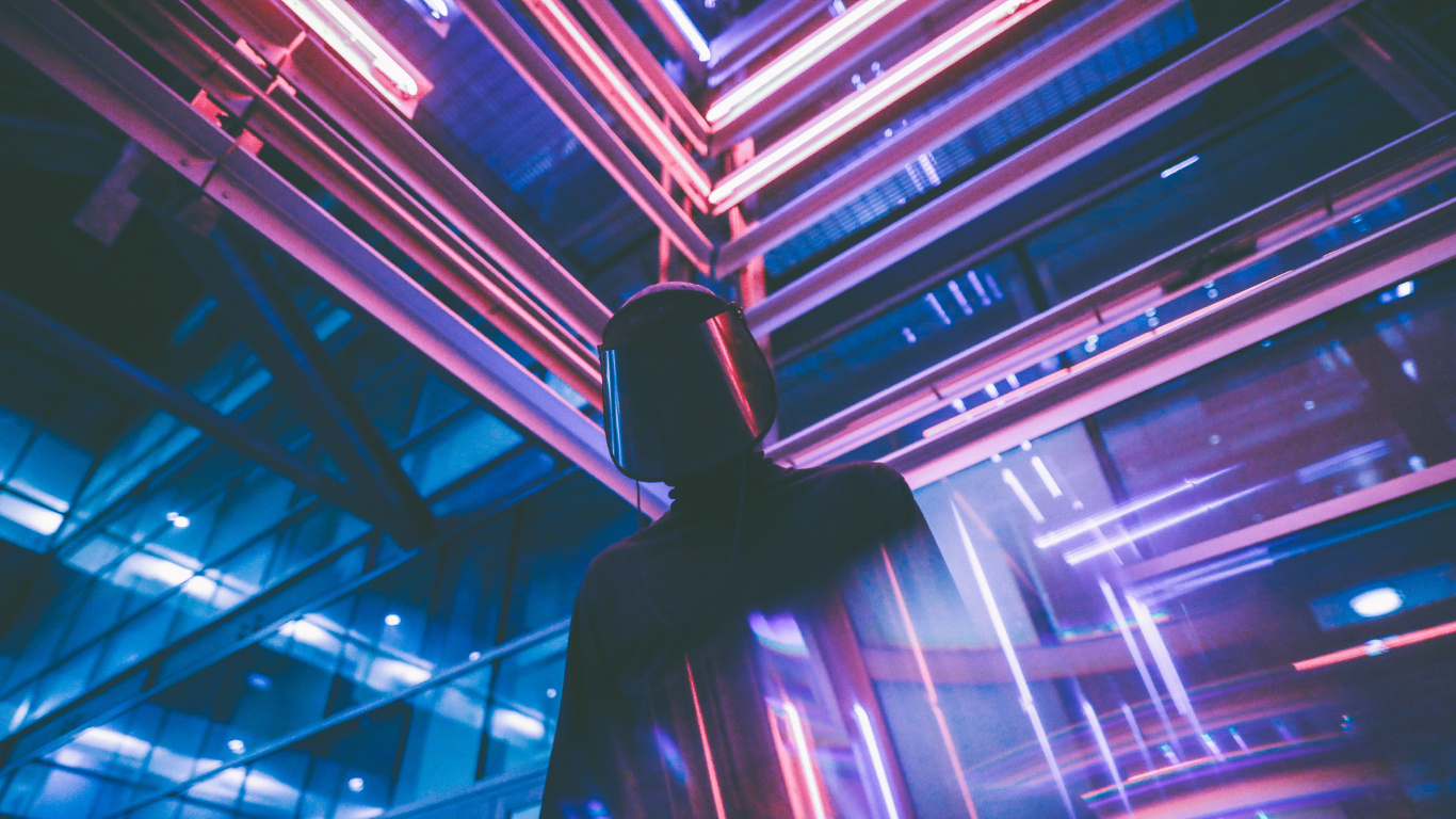 Обои 1366x768 свет, неон, синий, освещение, линия, HD ready картинка