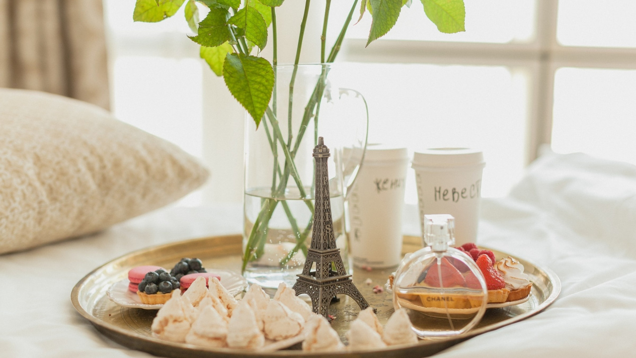 Обои 1280x720 завтрак, лоток, таблица, поздний завтрак, пища, HD, HDV, 720p, 16:9 картинка