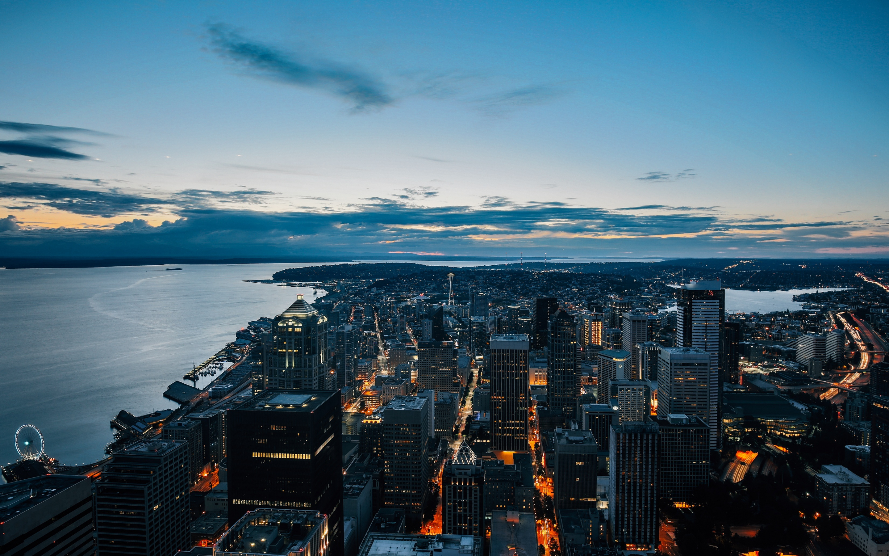 Обои городской пейзаж, город, городской район, горизонт, море, фото, заставка